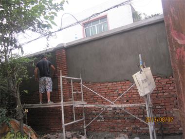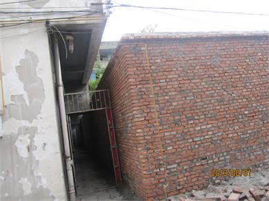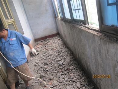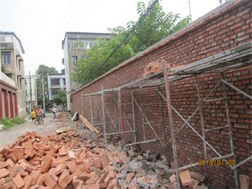 工行彭州支行丹山鎮(zhèn)閑置用房,因4.20蘆山地震原因造成局部墻體多條十字型斜裂縫出現(xiàn),該樓4層局部陽(yáng)臺(tái)女兒墻處有外傾斜比較嚴(yán)重,樓層地面與墻體脫離處間隔縫隙大約位于30㎜,局部陽(yáng)臺(tái)女兒墻處外傾斜狀況對(duì)該單位臨街商鋪人員及車(chē)輛行走可能造成更大的安全隱患問(wèn)題。同時(shí)該樓房后院處圍墻也因地震原因部份跨塌現(xiàn)狀,原有的大門(mén)也全部銹色破壞。經(jīng)我方工程技術(shù)人員反復(fù)多次檢查周邊現(xiàn)場(chǎng)的環(huán)境情況后,建議對(duì)該樓4層局部陽(yáng)臺(tái)女兒墻處外傾斜比較嚴(yán)重部份墻體進(jìn)行排危拆除處理,同時(shí)采用輕質(zhì)彩鋼夾心板加鋼龍骨進(jìn)行拆除墻體封閉,以保持整體墻面外觀一致。同時(shí)對(duì)其它安全隱患處進(jìn)行排危施工。 附以下排拆除及維修危施工照片
