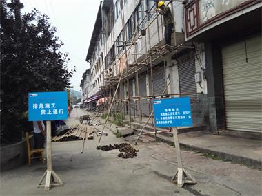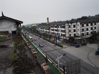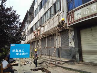 中國(guó)工商銀行股份有限公司彭州支行原九龍分理處綜合樓位于四川省彭州市丹景山鎮(zhèn),為地上4層磚混結(jié)構(gòu)房屋(底層局部為鋼筋混凝土梁、柱承重),使用功能底層為原銀行營(yíng)業(yè)廳,2~4層為職工宿舍,該房屋總建筑面積約1000㎡左右。5.12汶川地震及4.20蘆山地震發(fā)生后,業(yè)主委托四川省建筑科學(xué)研究院對(duì)其該房屋進(jìn)行安全性(技術(shù)性)鑒定。該房屋許多數(shù)據(jù)指標(biāo)不滿足現(xiàn)有規(guī)范要求,建議拆除2~4層以減輕該房屋底層上部承載力荷載,減輕自重并對(duì)局部進(jìn)行修整。在此情況下,我單位組織相關(guān)技術(shù)人員到施工現(xiàn)場(chǎng)進(jìn)行實(shí)際勘察調(diào)研工作后,現(xiàn)擬將該綜合樓2~4層房屋結(jié)構(gòu)全部拆除,樓體為住宅性的磚混預(yù)制樓板結(jié)構(gòu)。該房屋進(jìn)深為15.1m,橫向長(zhǎng)度為18 m,進(jìn)深兩側(cè)面各自為連排式的場(chǎng)鎮(zhèn)居民樓房屋相連,且兩邊居民樓房屋比需要拆除的樓層約高出1m左右,該樓前面是橫穿場(chǎng)鎮(zhèn)的大件公路及人行道旁側(cè)還有高壓線電纜樁。后面為該房屋的空地院壩。據(jù)觀察整體施工場(chǎng)地較為理想,由于受施工地點(diǎn)特殊性,拆除重點(diǎn)為保證施工安全、降低施工噪聲、減少粉塵污染,最大程度保證場(chǎng)地周邊居民環(huán)境不受影響。采取小型機(jī)械拆除為主,并由人工配合進(jìn)行拆除 附以下施工拆除照片