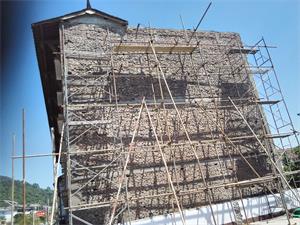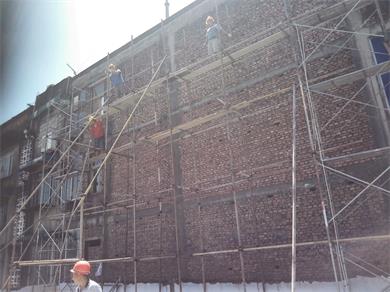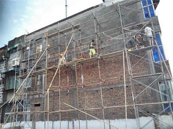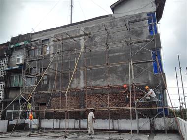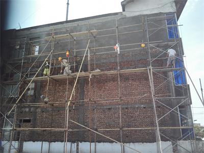 按彭州市丹景山鎮人民政府的要求對工行彭州支行原九隴分理處裸露的墻體進行風貌改造 ,其內容如下: 1、外墻面分層抹水泥砂漿(含原基層接觸面處理);2、外墻面涂刷防水膩子施工;3、外墻噴涂防水乳膠漆施工;4、墻面風貌色彩線條的分格;5、墻面鋼管腳手架拾設與拆除(含密目網防護);6、施工現場建渣清運。 附風貌改造現場施工照片