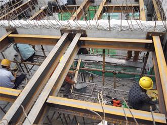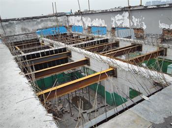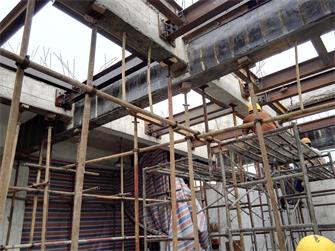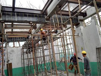 成都金開生物工程有限公司發(fā)酵車間局部梁、板改造加固項(xiàng)目,原結(jié)構(gòu)體系為鋼筋混凝土框架結(jié)構(gòu)。因增加設(shè)備荷載并對相應(yīng)局部梁、板進(jìn)行加固修復(fù),使結(jié)構(gòu)達(dá)到安全狀態(tài),涵蓋了以下施工內(nèi)容:局部樓板拆除與恢復(fù)施工;新增板底鋼梁制作安裝施工;梁底、梁面粘鋼加固施工;梁底斜截面粘貼碳纖維加固施工;對局部阻礙部位建筑物待改造后進(jìn)行恢復(fù)工作;、完成施工區(qū)域范圍活載位移并搭設(shè)有效支撐進(jìn)行卸荷措施;