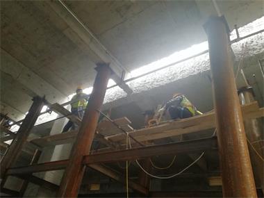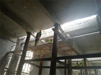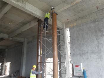 經過一個半月緊張有效的施工,又完成由四川省建筑科學研究院設計的中鐵建大橋工程局集團第五工程有限公司新辦公大樓多功能廳拔柱加固改造項目,施工內容工序繁多大而堅險,涉及多工種交叉作業特種施工技術,有鋼筒頂升托換支撐、承重柱靜力切割、拆除、梁柱加大加粗截面、預應力拉錨加固等施工內容,并通過成都建工質量檢驗中心進行施工質量鑒定,獲甲方與監理及總包施工一到致好評。 附以下施工記錄照片: